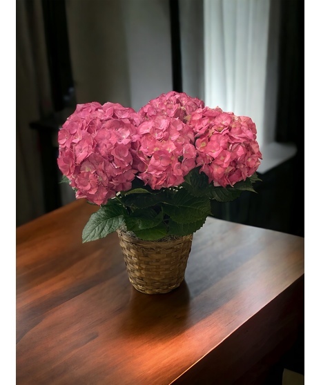 The Pink Hydrangea Plant from Bloomwoods Flowers in Columbus, GA, embodies the charm and grace that hydrangeas are known for, particularly in Southern gardens. Presented in a rustic basket as shown in the image, this lush pink hydrangea plant comes in a 6-inch pot, making it a perfect size for both indoor and outdoor settings. The vibrant pink blooms add a splash of color to any room or garden, bringing with it a sense of renewal and joy that only flowers can.